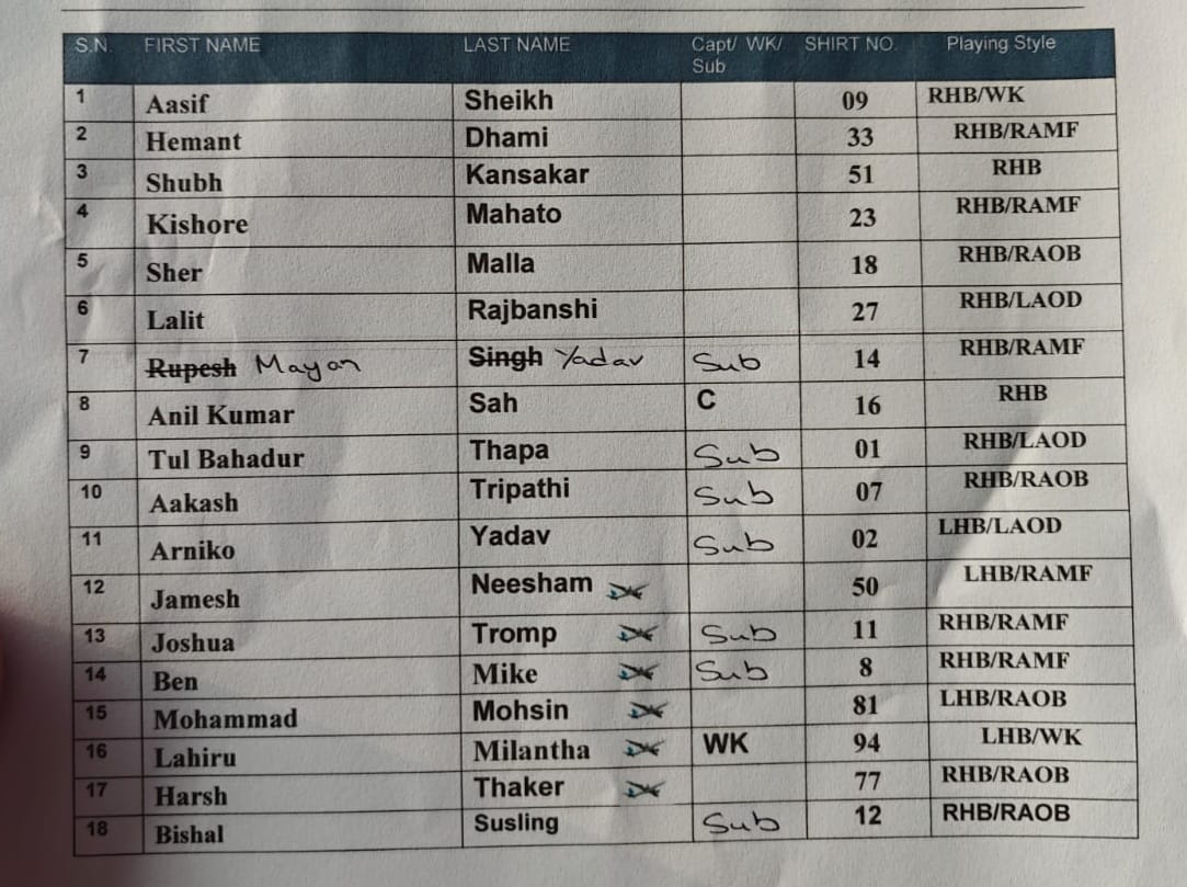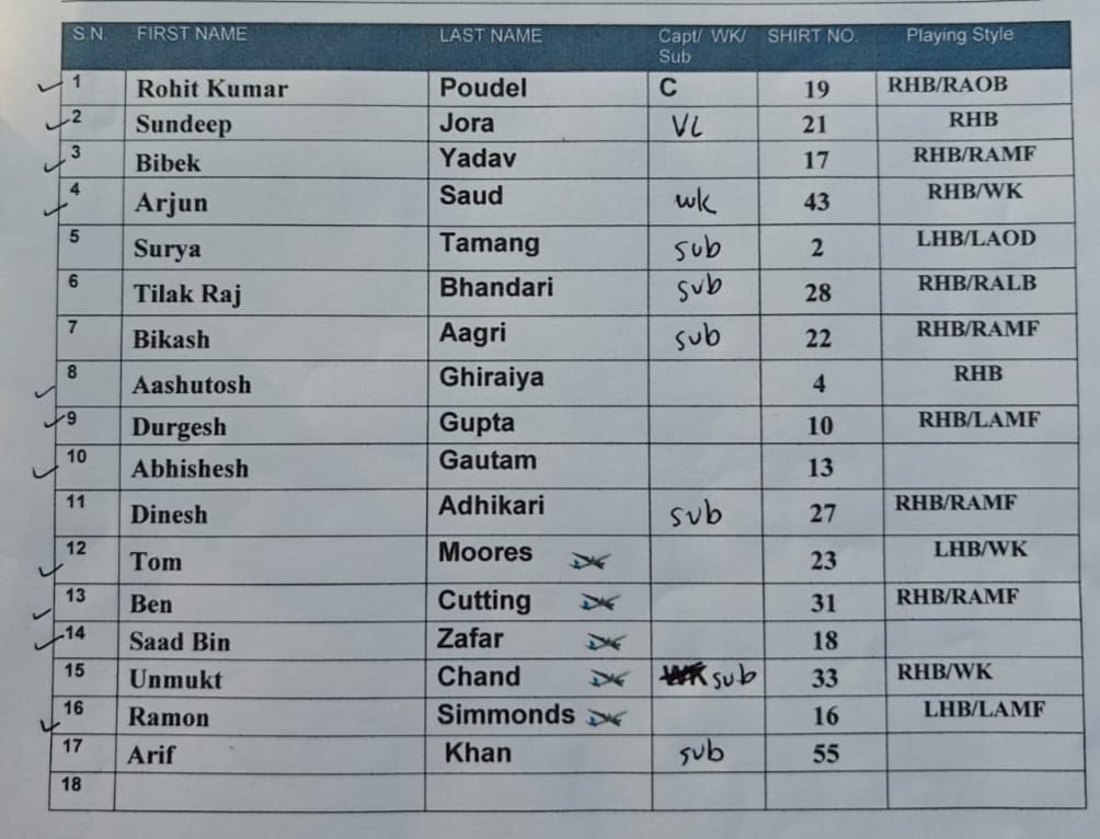 जनकपुर अनिल शाहको कप्तानीमा छ भने लुम्बिनी राष्ट्रिय टिमका कप्तानसमेत रहेका रोहित पौडेलको नेतृत्त्वमा मैदानमा उत्रेकाे छ।