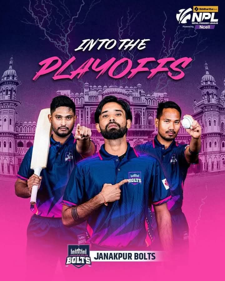 काठमाडौं: जनकपुर बोल्ट्स नेपाल प्रिमियर लिग(एनपीएल) काे प्लेअफमा पुगेको छ ।
