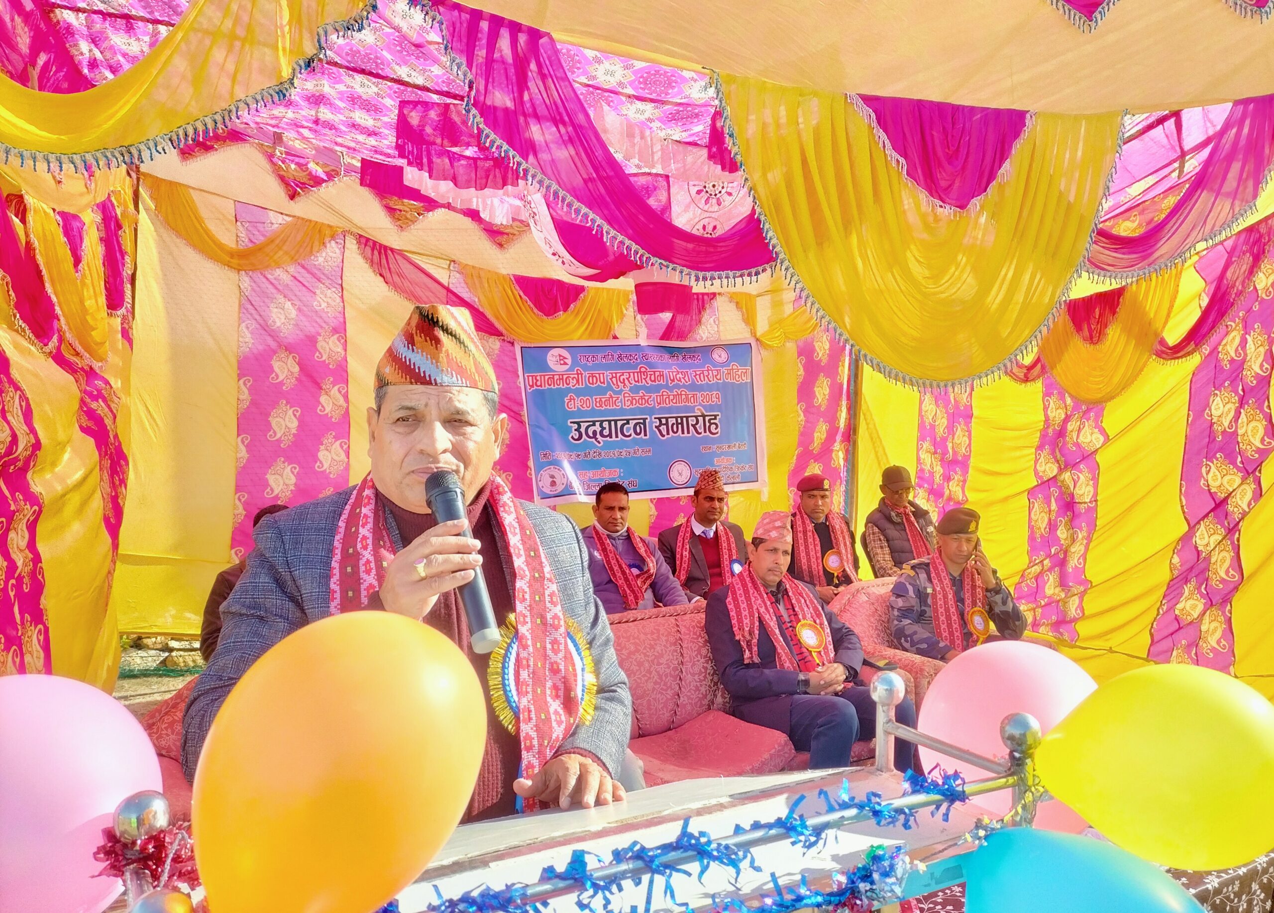 उद्घाटन समारोहमा बाेल्दै प्रमुख जिल्ला अधिकारी दिर्घराज उपाध्यायले क्रिकेटको माध्यमबाट नेपाल विश्वमा चिनिएकाे बताउनुभयाे।