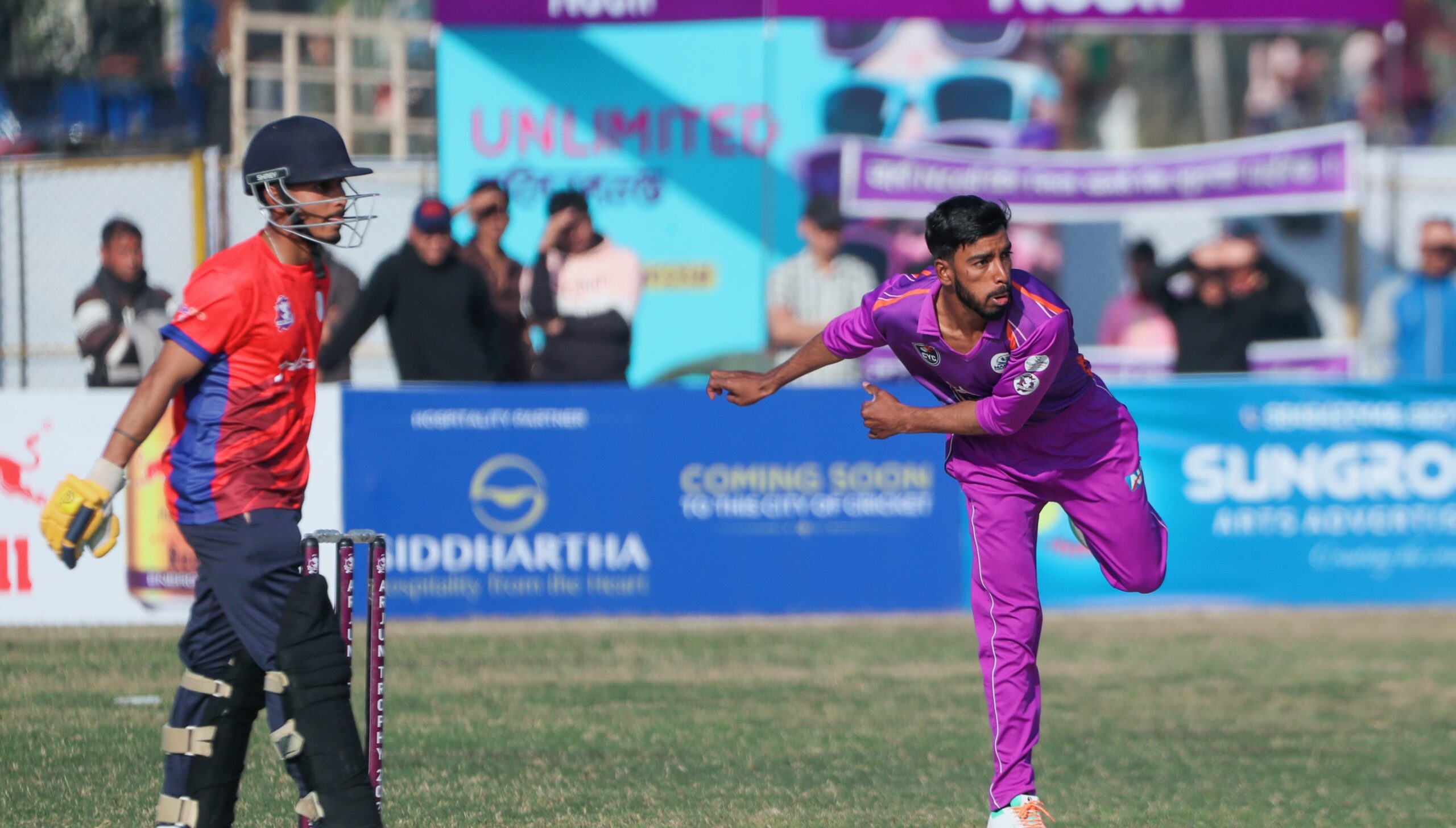 कप्तान सन्तोष कार्की २३, सन्दीप क्षेत्री १६ र शंकर राणा १४ रनमा आउट भए। काठमाडौंका दीपेन्द्र रावत र युनिस ठकुरीले समान दुई विकट लिए। सूर्य तामाङ, नितेश यादव र विपिन आचार्याको नाममा समान एक विकेट रह्यो।