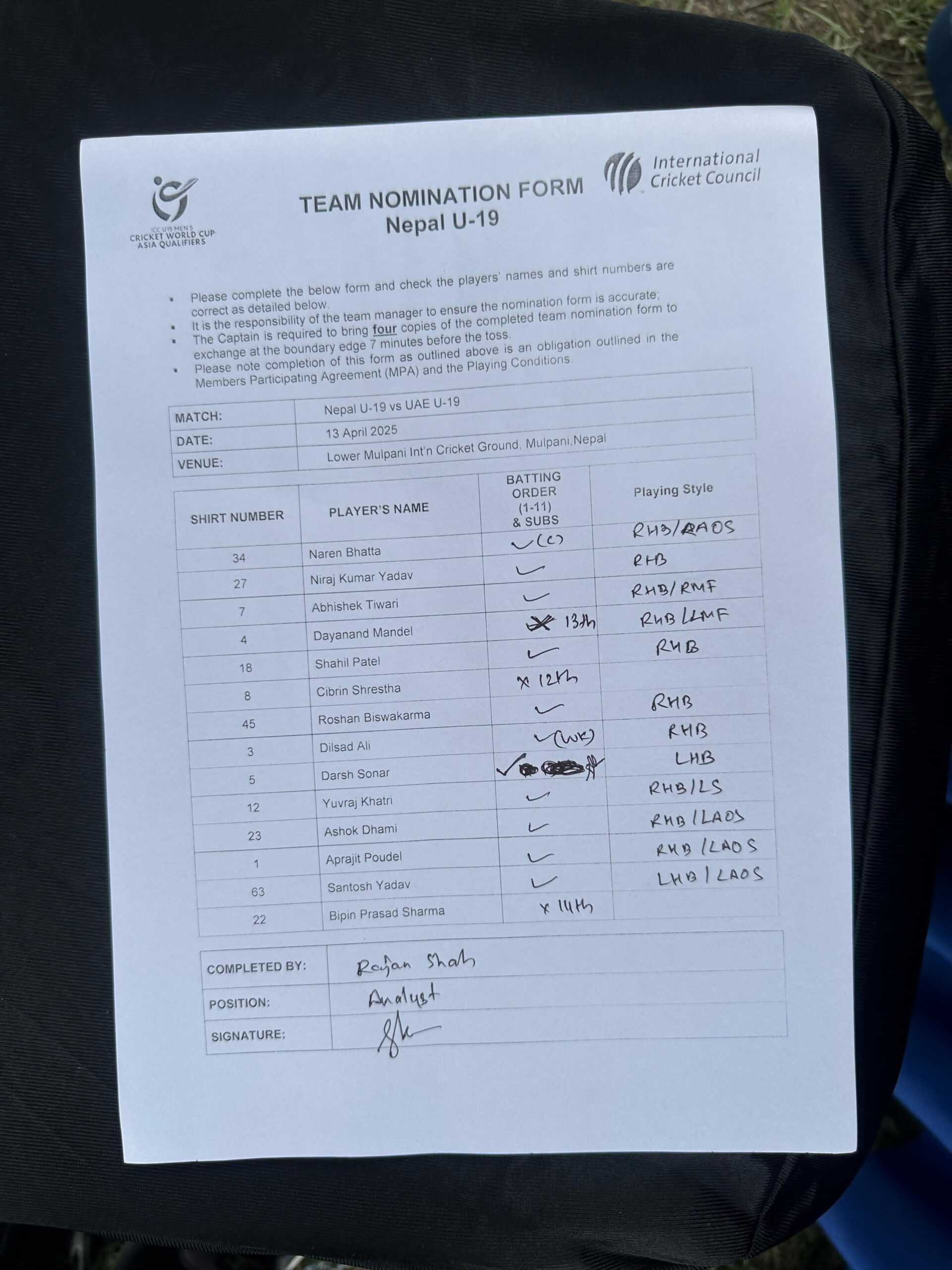 युएईले टस जितेर नेपाललाई ब्याटिङको निम्ता दिएको छ ।