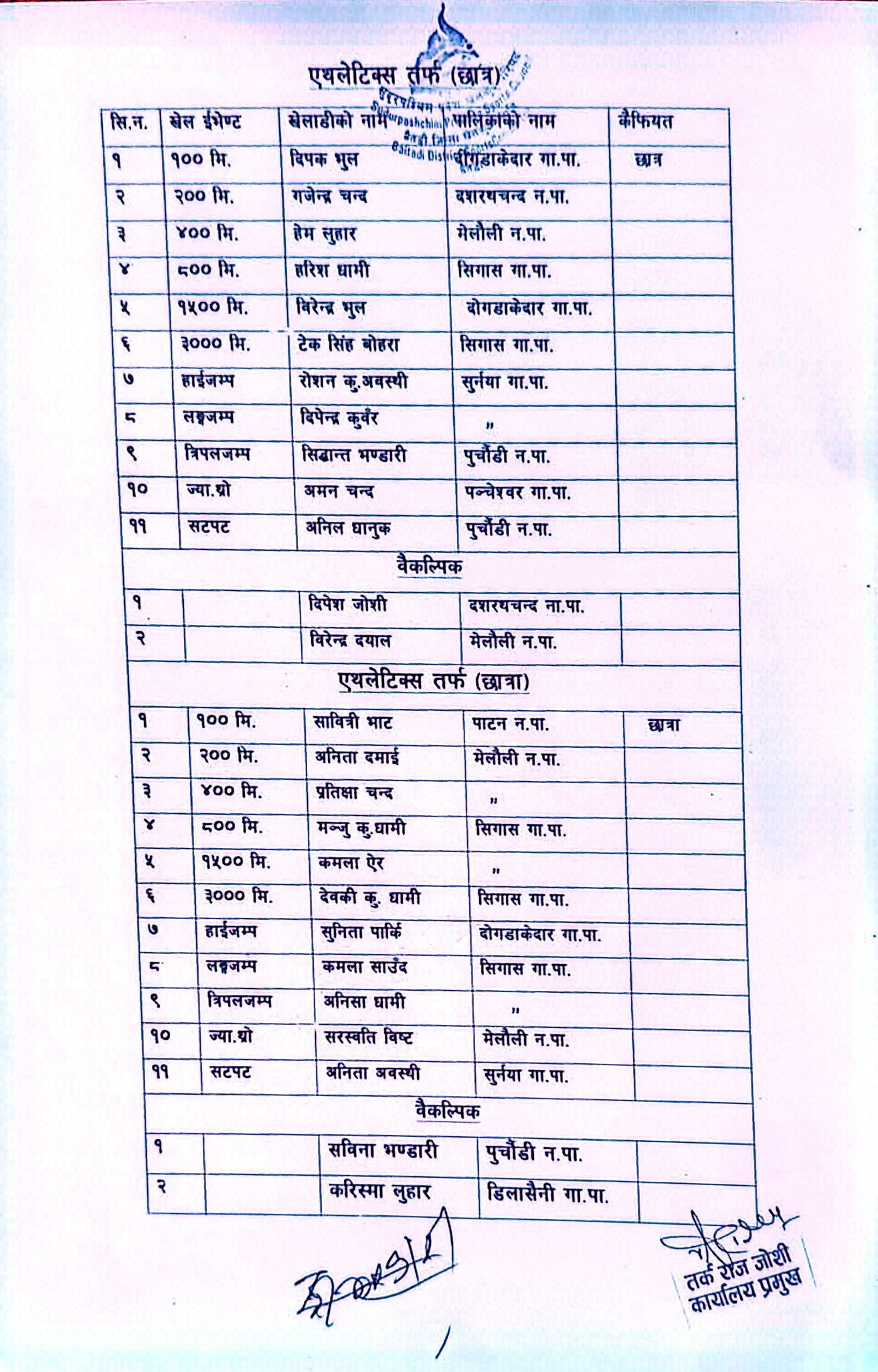 हालै पुर्चौडी नगरपालिकामा सम्पन्न १५ औं जिल्लास्तरीय राष्ट्रपति रनिङ्ग शिल्ड प्रतियोगिताबाट ७० खेलाडी छनौट गरिएका हुन् ।