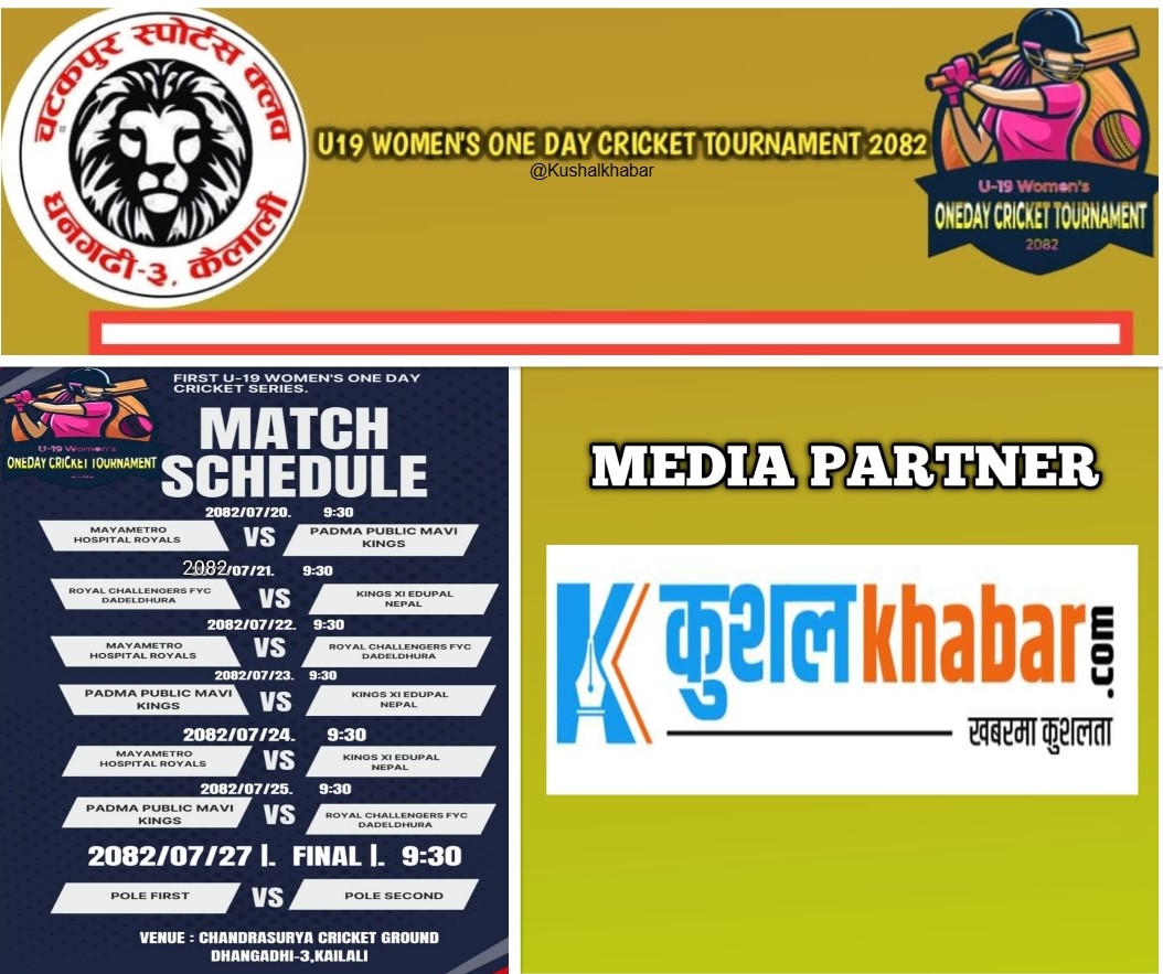 बैतडी: कैलालीको धनगढीमा प्रथम यु–१९ महिला एकदिवसीय क्रिकेट सिरिज–२०८२ को तयारी भएको छ । चटकपुर स्पोट्स क्लबको आयोजना प्रतियोगिता यहि कात्तिक २० गतेदेखि शुरु हुनेछ।